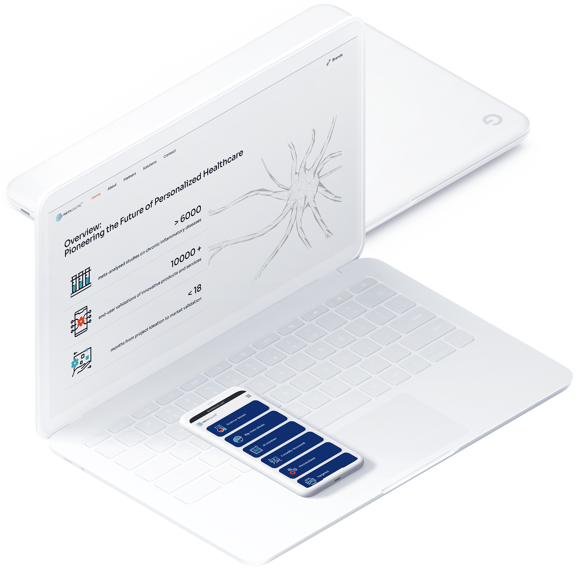 The brief was to create a new website that represents the brand in Webflow. There’s currently a new orange that highlights the whole design added to original blue visuals. New icons and especially, the illustration of connected triangles that represents connection between the companies, gut and the brain.